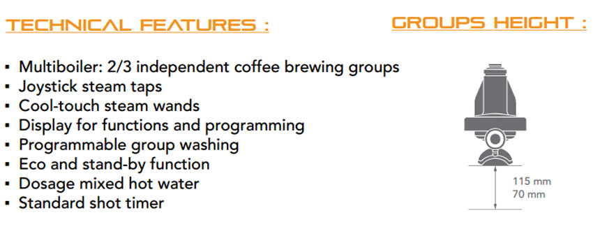 Hệ thống đa nồi hơi (Multiboiler): Máy có nồi hơi độc lập cho từng group pha cà phê, đảm bảo kiểm soát nhiệt độ chính xác.