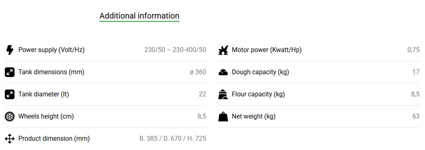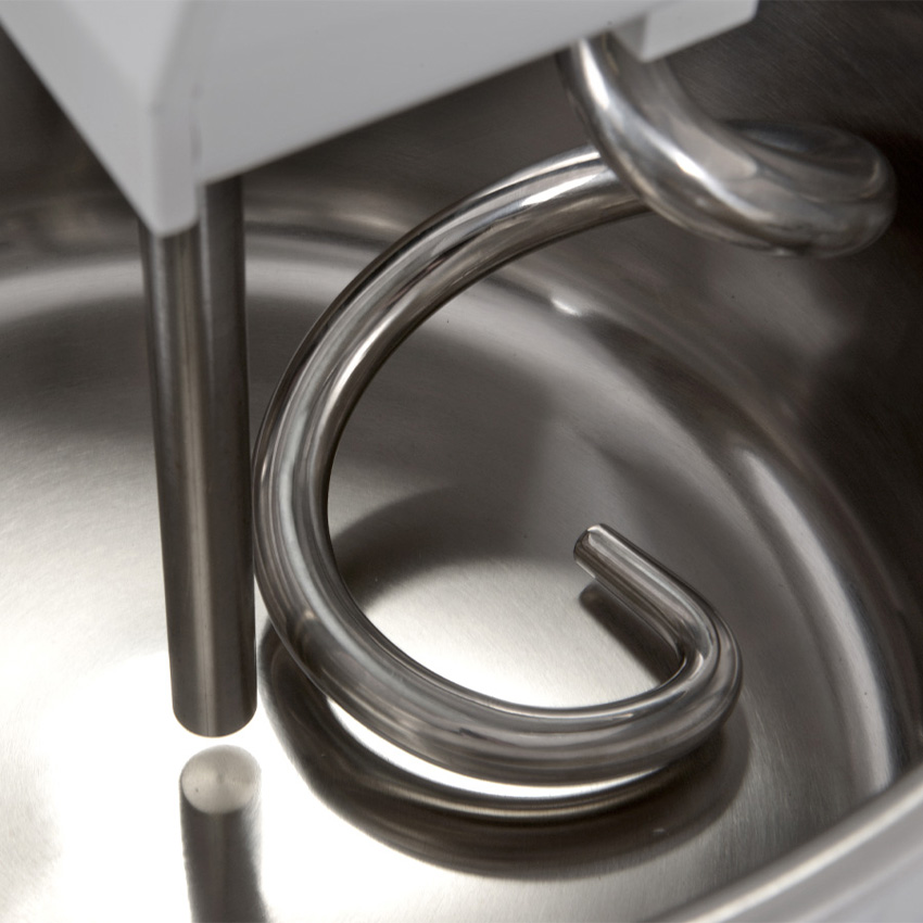 Máy trộn Fama nổi tiếng với kết cấu thép chắc chắn, các bộ phận bằng thép không gỉ AISI 304 (bát trộn, trục xoắn và thanh chia bột) và tuân thủ tiêu chuẩn CE. Máy được thiết kế để tạo ra hỗn hợp bột hoàn hảo, đặc biệt là bột mềm như bột làm bánh mì, pizza và piadina, croissant