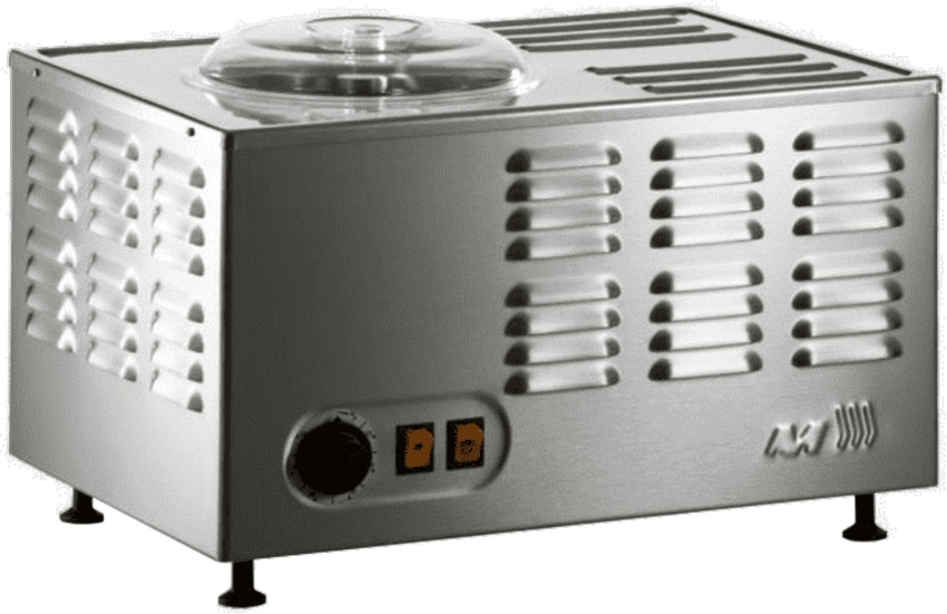 Được làm hoàn toàn bằng thép không gỉ, máy chắc chắn, đáng tin cậy và được thiết kế để sản xuất từ ​​1 kg đến 1,5 kg gelato mỗi mẻ.