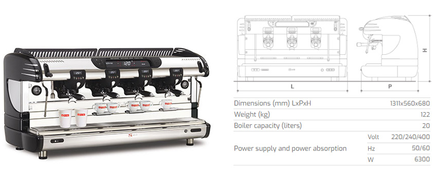 Thông số kỹ thuật máy pha cà phê S40 Suprema Ta 3 group